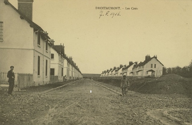 Chantier de construction d'une des "trois rues" de la cité ouvrière Schneider à Droitaumont, vers 1910