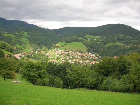 Nicolas. Sur l'annuaire téléphonique de 2006, on peut noter une adresse typique à Fréland dans le pays Welche : La ferme "GAUDEL". Peu de monde se souvient que cette appellation date de Jean Louis devenu propriétaire de deux fermes au lieu-dit Châmont sur la commune de Fréland. Ces fermes datent de 1802 et 1809. Jean Louis aura huit enfants...mais beaucoup de filles. Aujourd'hui, les seuls descendants GAUDEL de Jean Louis sont dans le sud ouest de la France, et s'expriment avec un accent du soleil qui leur poserait peut être quelques difficultés pour s'exprimer dans le patois de leurs ancêtres! Maria Julie GAUDEL, une des petites filles de Jean Louis épousa René Séraphin PIERREVELCIN qui poursuivit l'exploitation d'une des deux fermes. Aujourd'hui, la ferme "GAUDEL" devient doucement la ferme "PIERREVELCIN", où les petits enfants de Maria Julie GAUDEL poursuivent l'exploitation de la ferme familiale. Les vaches laitières de Jean Claude PIERREVELCIN qui broutent l'herbe dans les mêmes prés que ceux de Jean Louis GAUDEL se posent sans doute moins de questions que nous! Les photos sont prises depuis la jolie petite route du col de Châmont, qui relie Lapoutroie à Fréland. |