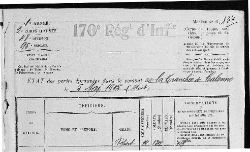 JOURNAL des MARCHES et OPERATONS du 170è R.I. Journée du 5 mai 1915